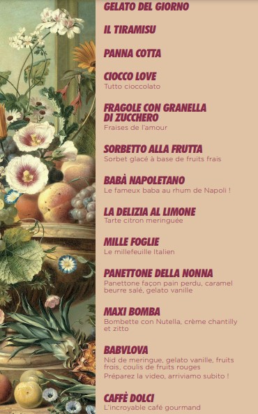 Faites défiler les pages pour découvrir le menu complet
