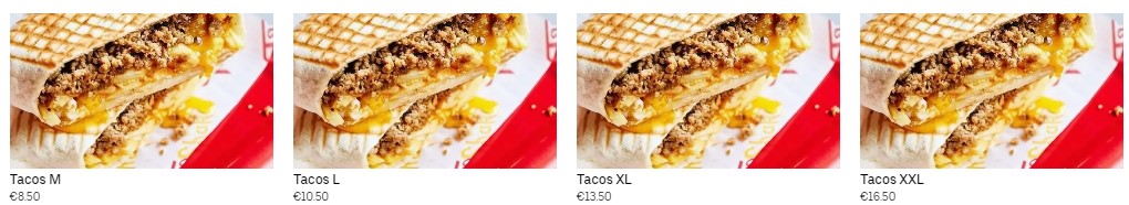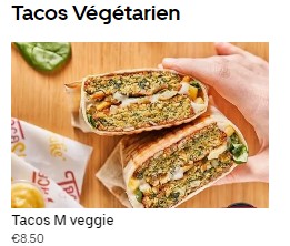 Dans la catégorie Tacos Végétarien, le Tacos M veggie est proposé au prix de 8,50 €. De plus, dans la catégorie BOWLS, il y a trois options végétariennes : BOWL RACLETTE, BOWL TARTIFLETTE et BOWL GRATINADE, au prix de 15,90 euros chacun. Ces options offrent une variété de choix sans viande, y compris des tacos savoureux et des bols qui répondent aux préférences végétariennes.